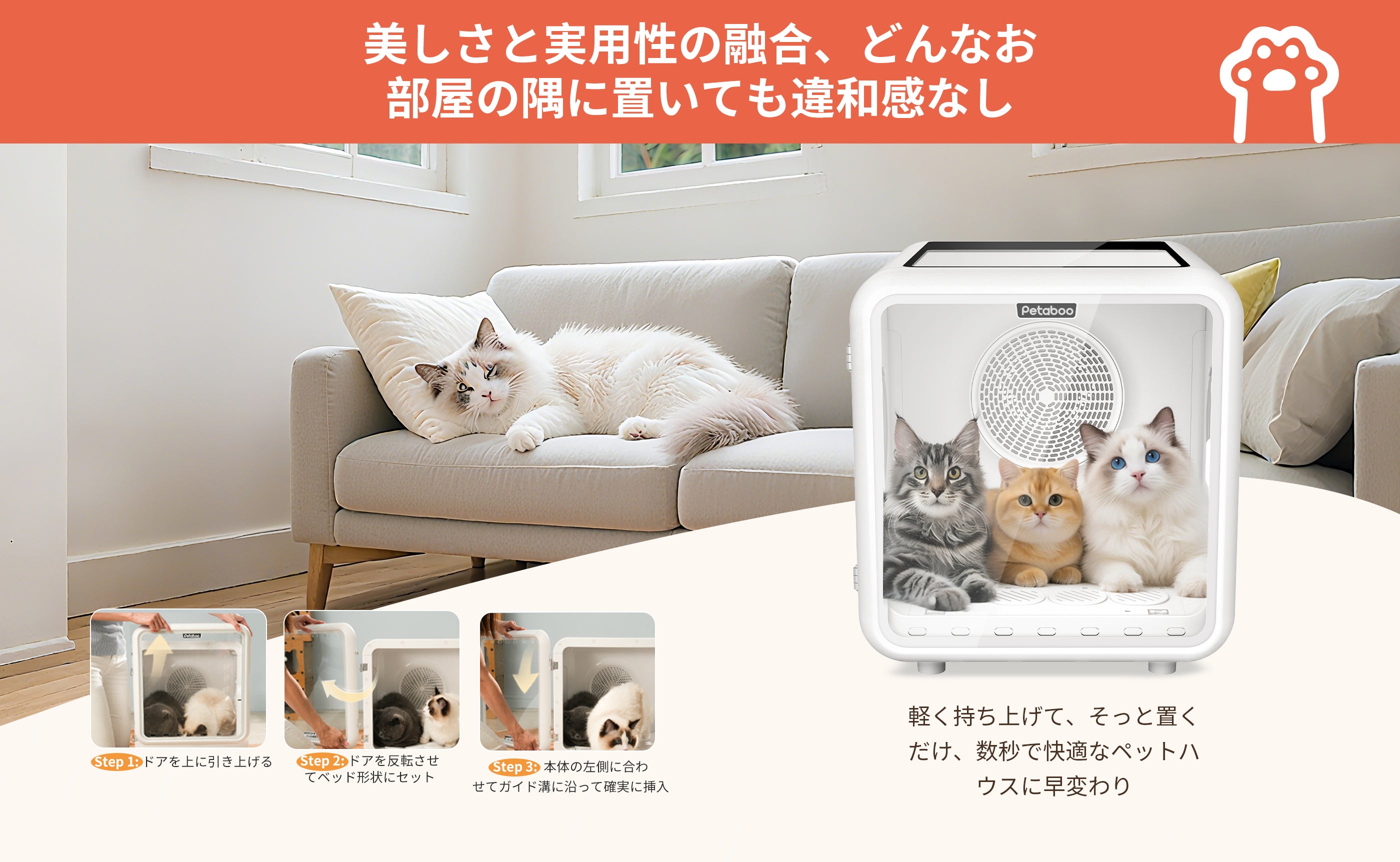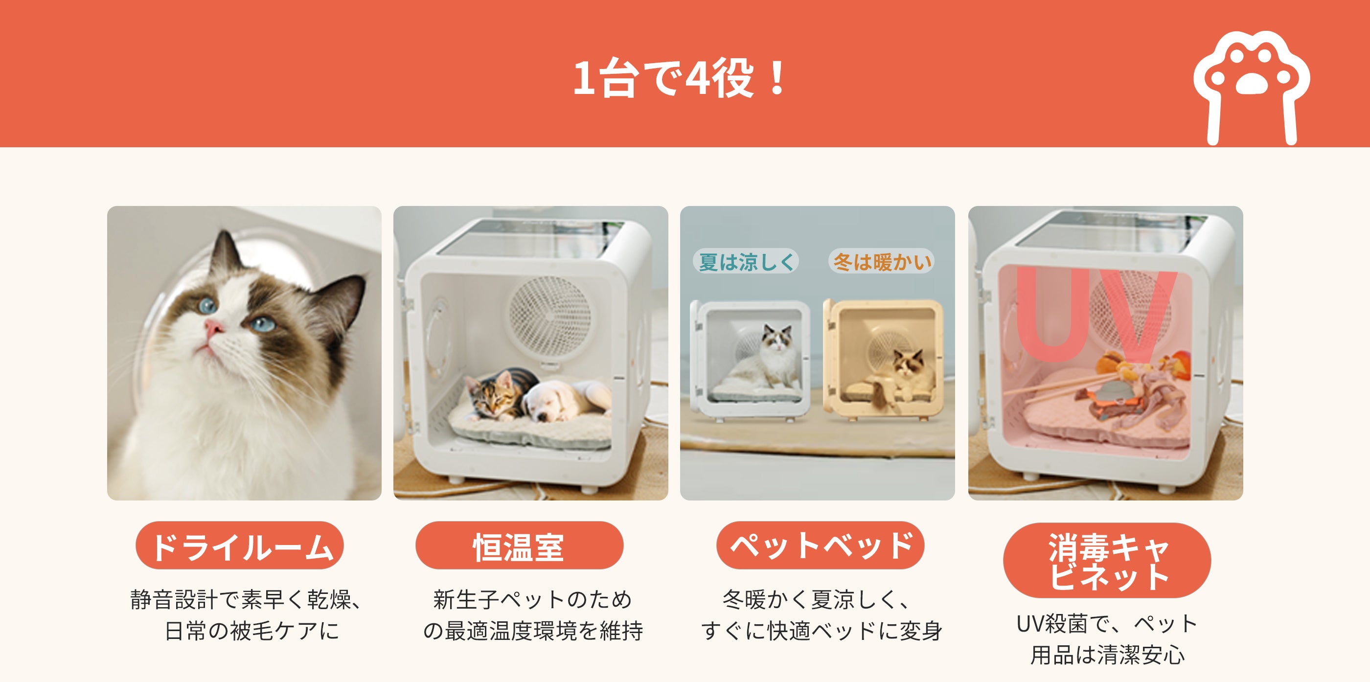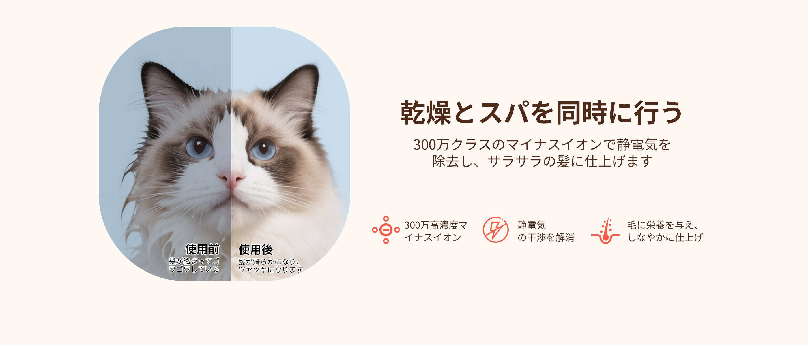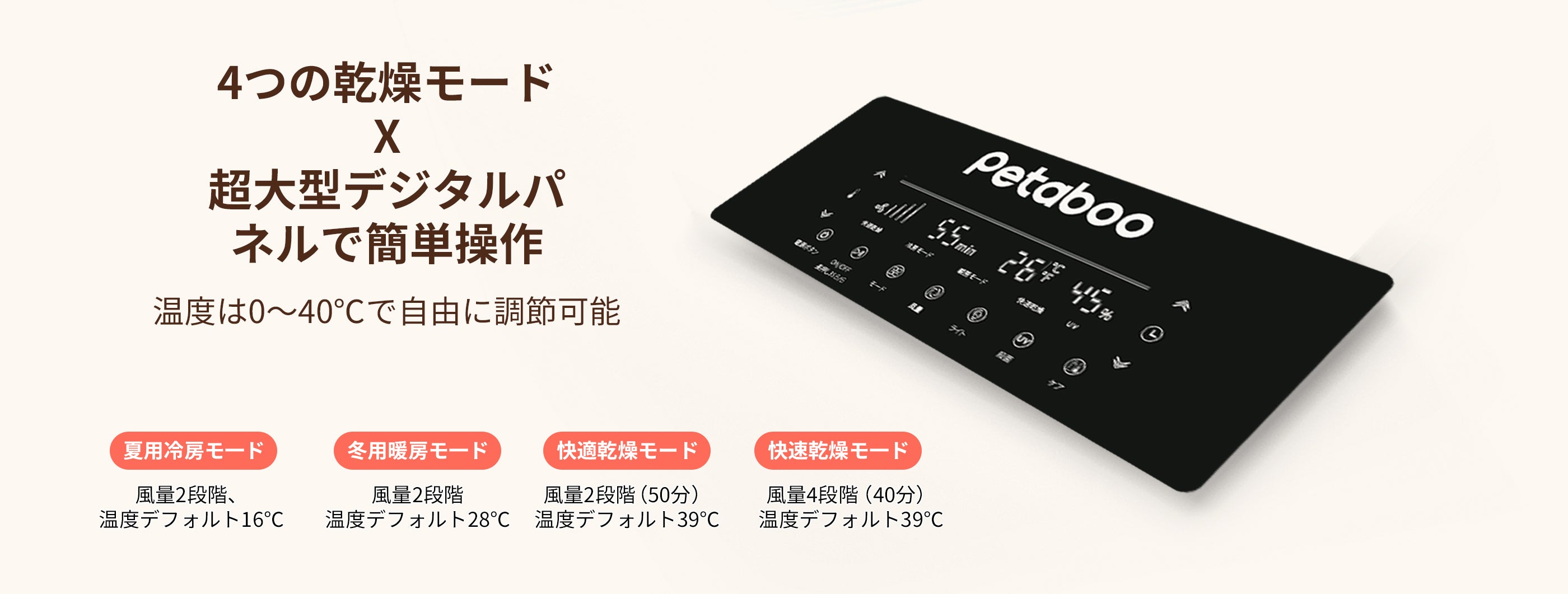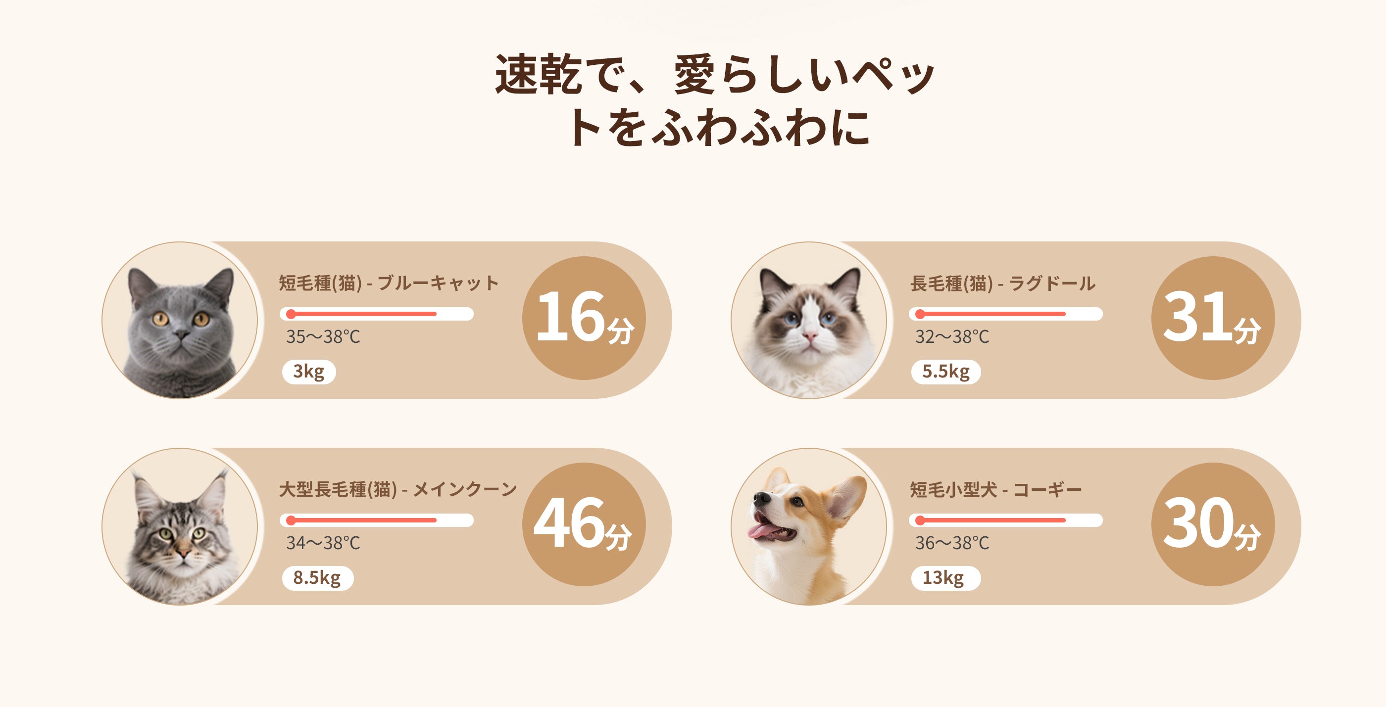 - 自動温度&風量調整機能で、ペットにやさしい最適乾燥を実現