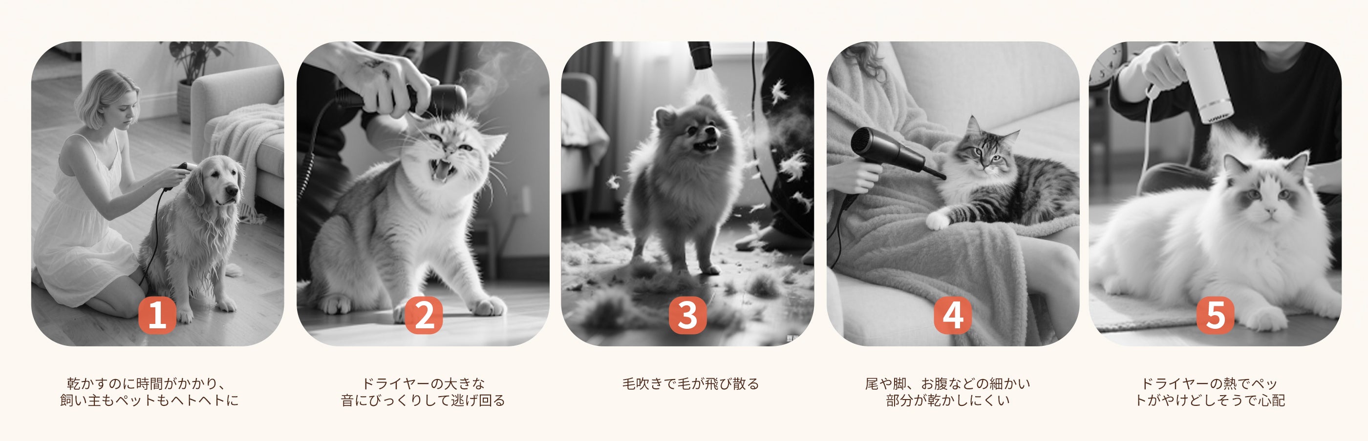 - 静音設計採用、音に敏感なペットにも安心のドライ体験
