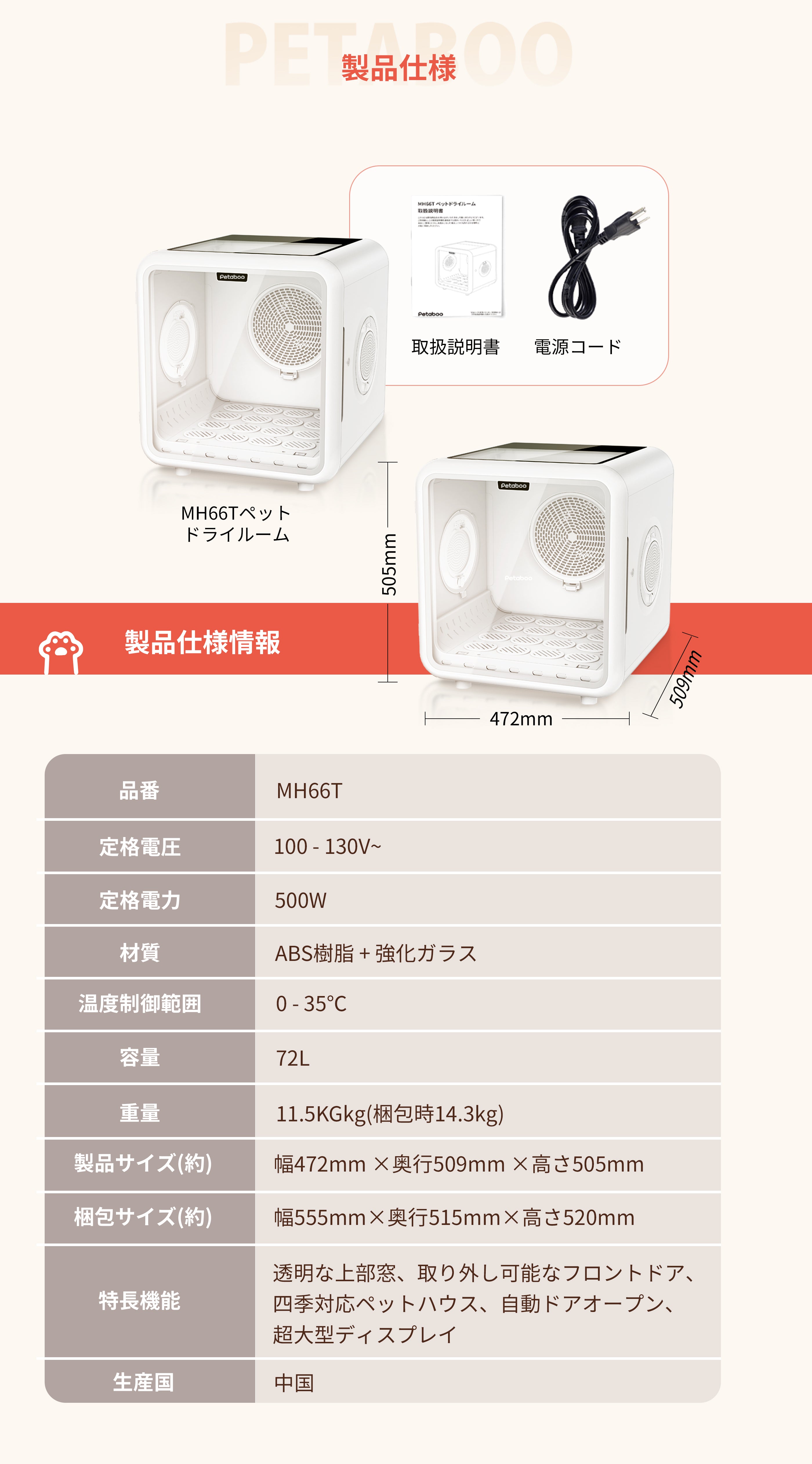 ペット ドライ ルーム,ペット乾燥機 72L大容量 犬猫兼用 MH66T
